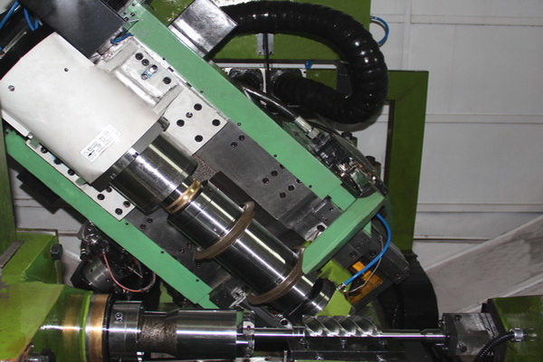 機(jī)床砂輪架上安裝有兩個CBN砂輪部件,分別完成轉(zhuǎn)子槽的粗/精磨削,砂輪架可沿軸向移動,使CBN砂輪移動至對應(yīng)的磨削工位。通過對工件的粗磨及精磨,是一種大幅提高螺桿/螺旋轉(zhuǎn)子工件齒型型線各項精度指標(biāo)的先進(jìn)工藝方式。